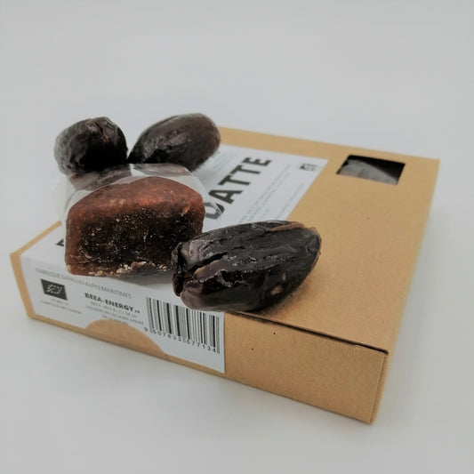 Le carré, de par son élaboration en pâte, permet une meilleure assimilation pendant l’activité par rapport aux fruits entiers. Cela nous permet également d’y intégrer des supers aliments et de varier les saveurs. Le format structure précisément les prises, et le conditionnement pratique permet une bonne conservation des vertus nutritionnelles.
